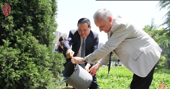 隨后,在易園舉行的共植友誼樹活動上,馬林青發(fā)表了熱情洋溢的致辭。他說,共植友誼樹,情深萬年長。這片蒼翠繁茂的國際友好交往紀(jì)念林,見證了安陽與加拿大萊橋市、韓國安養(yǎng)市等多個(gè)國際友好城市的交往合作。此次我們共同種植下第十四棵友誼樹,相信在大家的共同呵護(hù)下,中法友誼之樹必將根深葉茂、萬古長青。阿蘭·拉巴特,法中友協(xié)聯(lián)合會秘書長、弗朗什—孔泰中國友協(xié)主席阿蘭·嘉寶賀喜,南特—大西洋中國友協(xié)主席愛德蒙·博雷,雷恩中國友協(xié)主席玫雅琳等紛紛發(fā)言,共同表示,將努力為深化中法兩國人民友誼作出更大的貢獻(xiàn)。