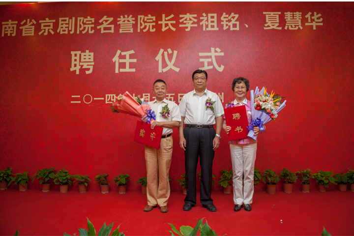 7月15日,省委常委、宣傳部長趙素萍,副省長張廣智等領(lǐng)導(dǎo)出席河南省京劇院名譽院長李祖銘、夏慧華聘任儀式。