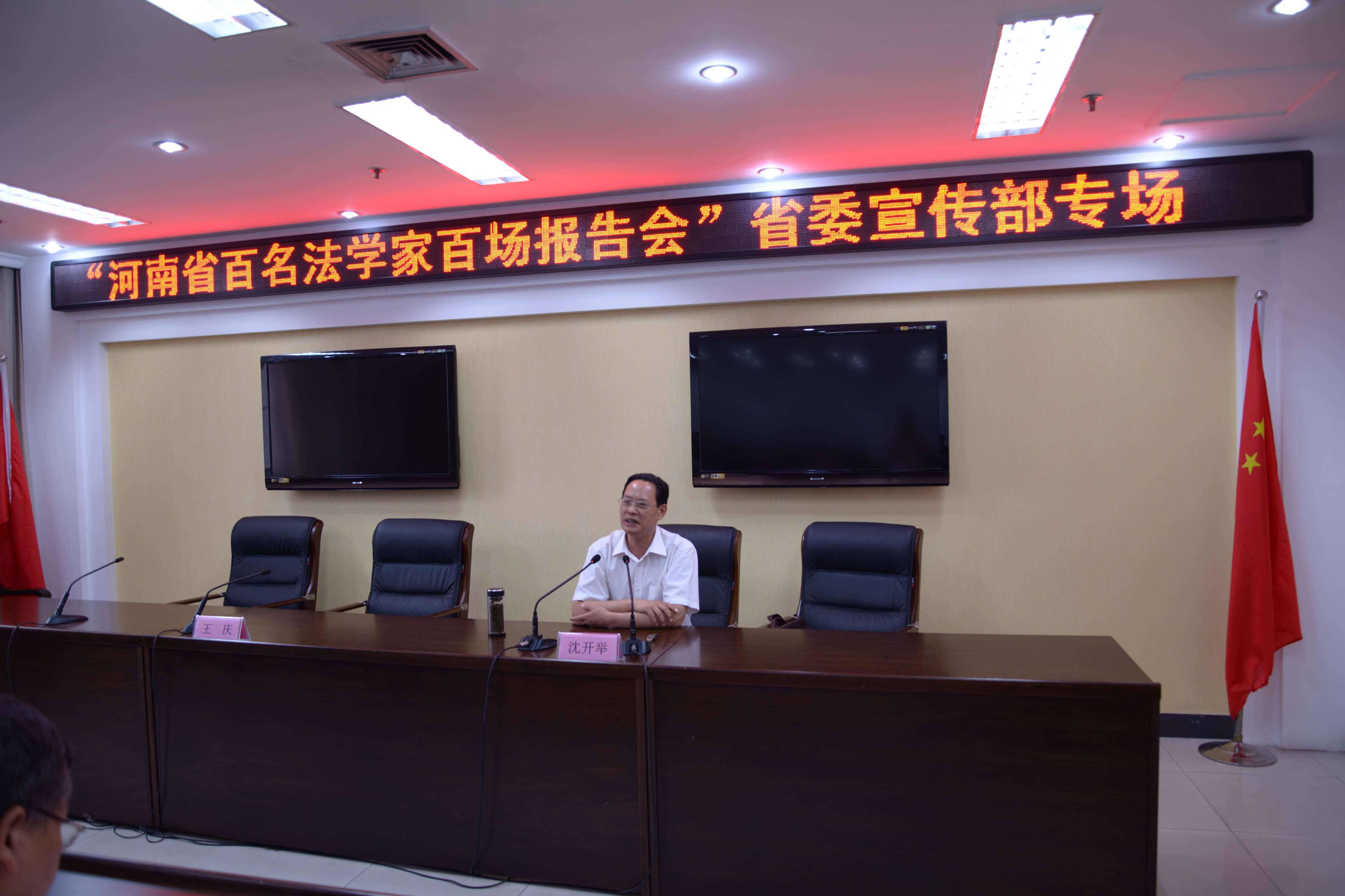 為更好地把握依法治國與加強黨的領(lǐng)導的關(guān)系,明確宣傳思想文化工作在推進依法治國中的責任,根據(jù)省委組織部、宣傳部、政法委等聯(lián)合下發(fā)的《2015年河南省“百名法學家百場報告會”法治宣講活動實施方案》,省委宣傳部機關(guān)于2015年8月14日(周五)下午舉行了“河南省百名法學家百場報告會”省委宣傳部專場。