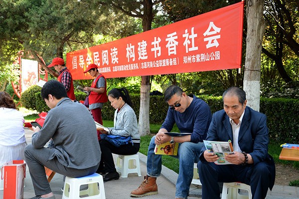 喜迎“世界讀書(shū)日” 鄭州紫荊山公園支起愛(ài)心書(shū)攤