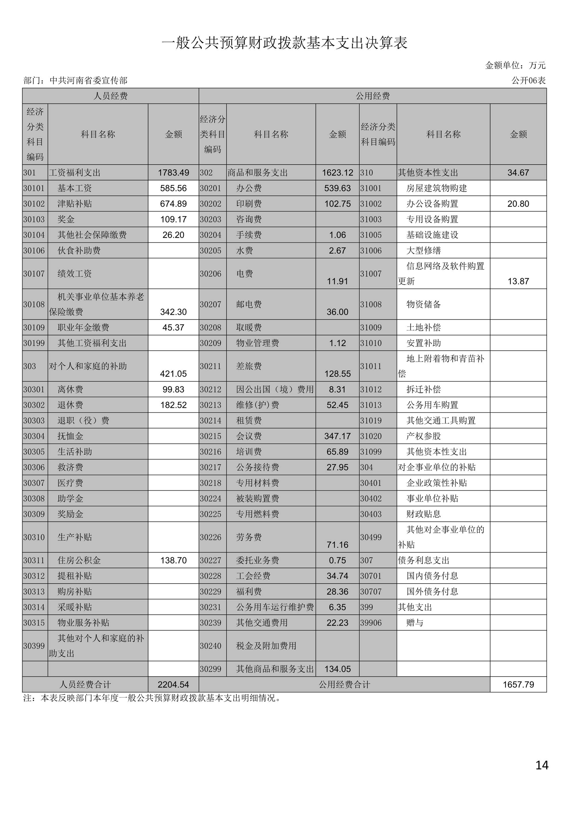 2017年度中共河南省委宣傳部部門決算公開(kāi)